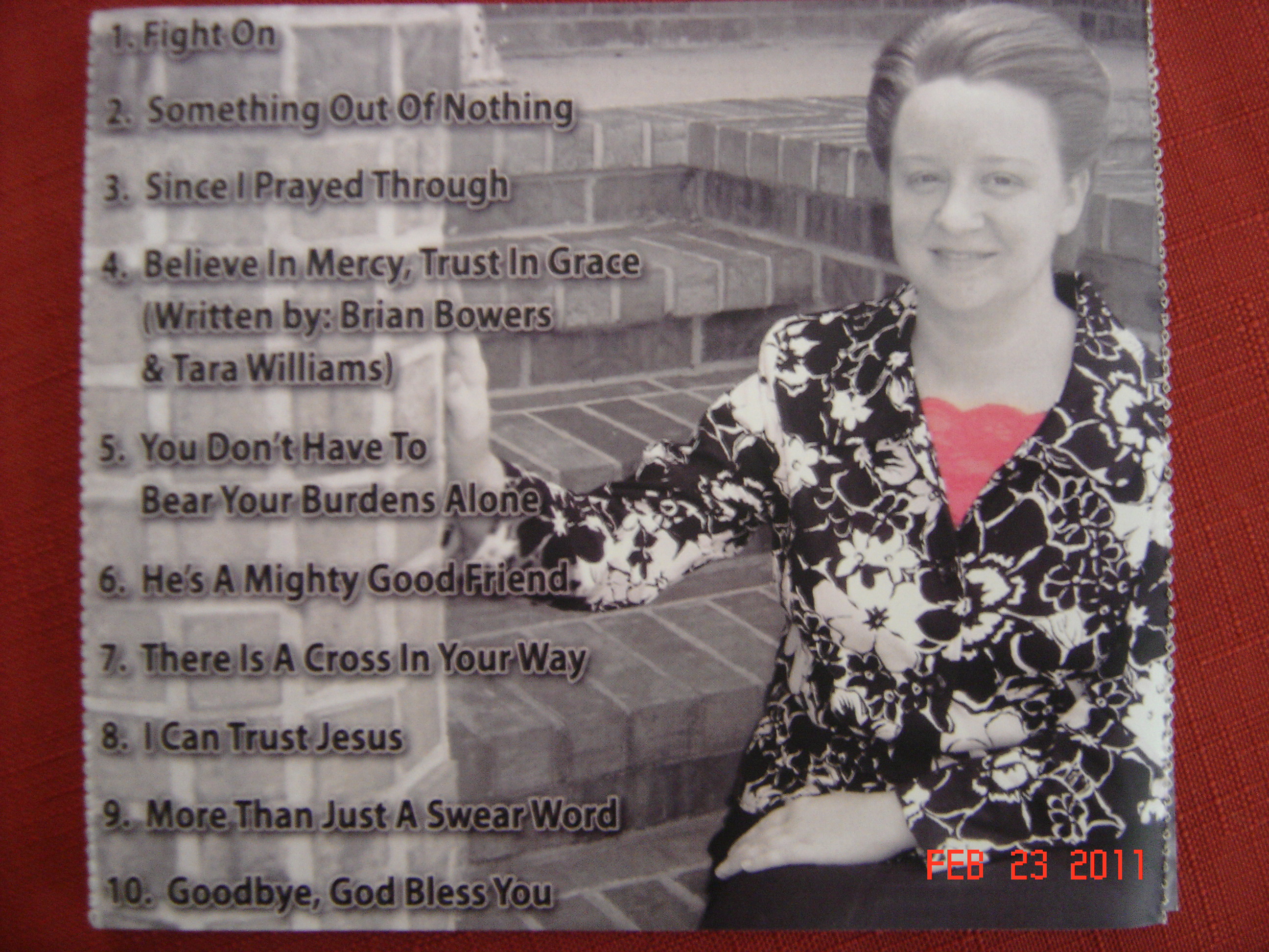 This is a southern gospel CD I myself recorded. The Title of the CD is "Trust In Grace". It has 10 songs, one of which, my brother & I wrote, entitled "Believe In Mercy, Trust In Grace", of which won a runner-up position in the SINGING NEWS Song Writer Contest for 2011!!! Hope you enjoy!!