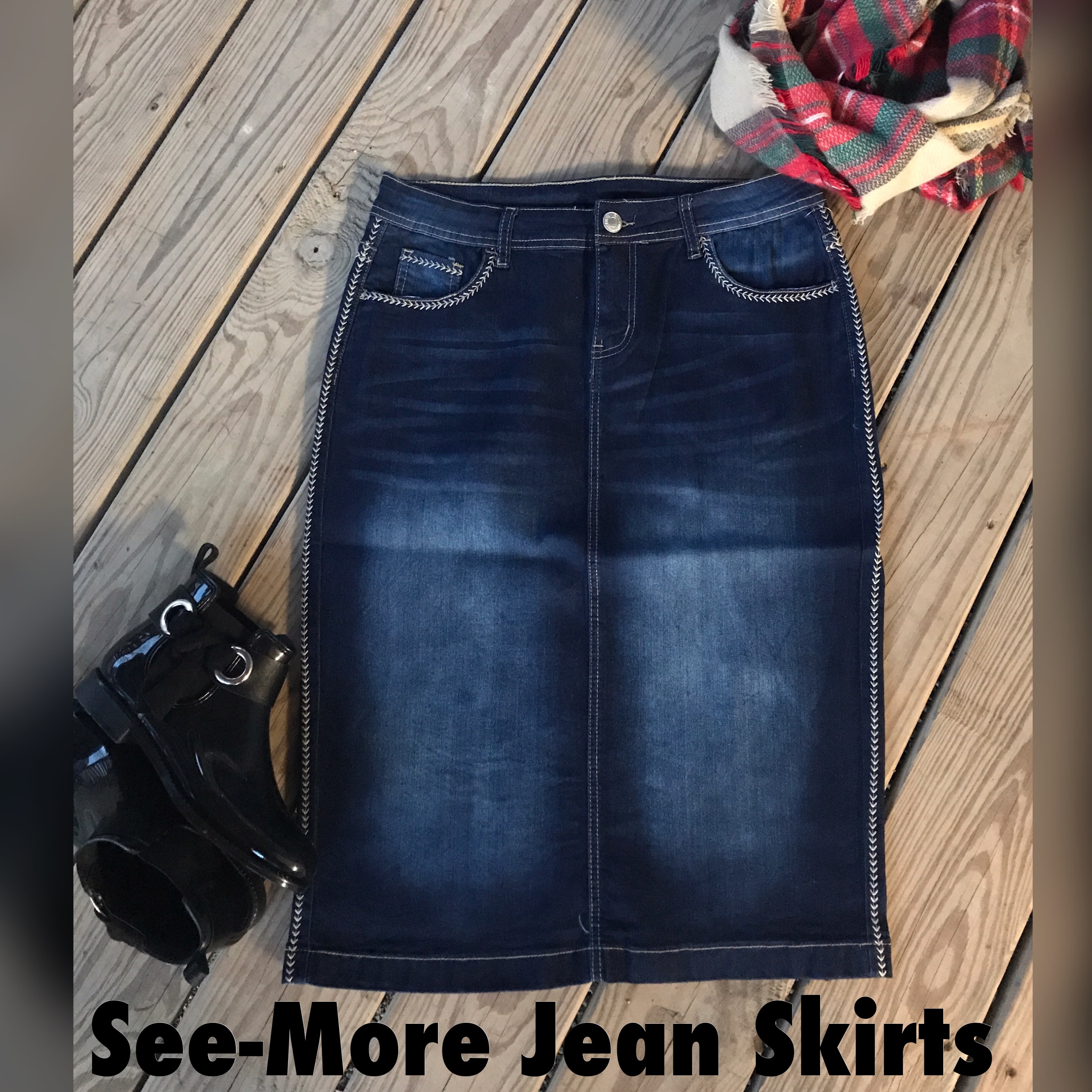 KRISTY MID LENGTH DARK WASH DENIM SKIRT