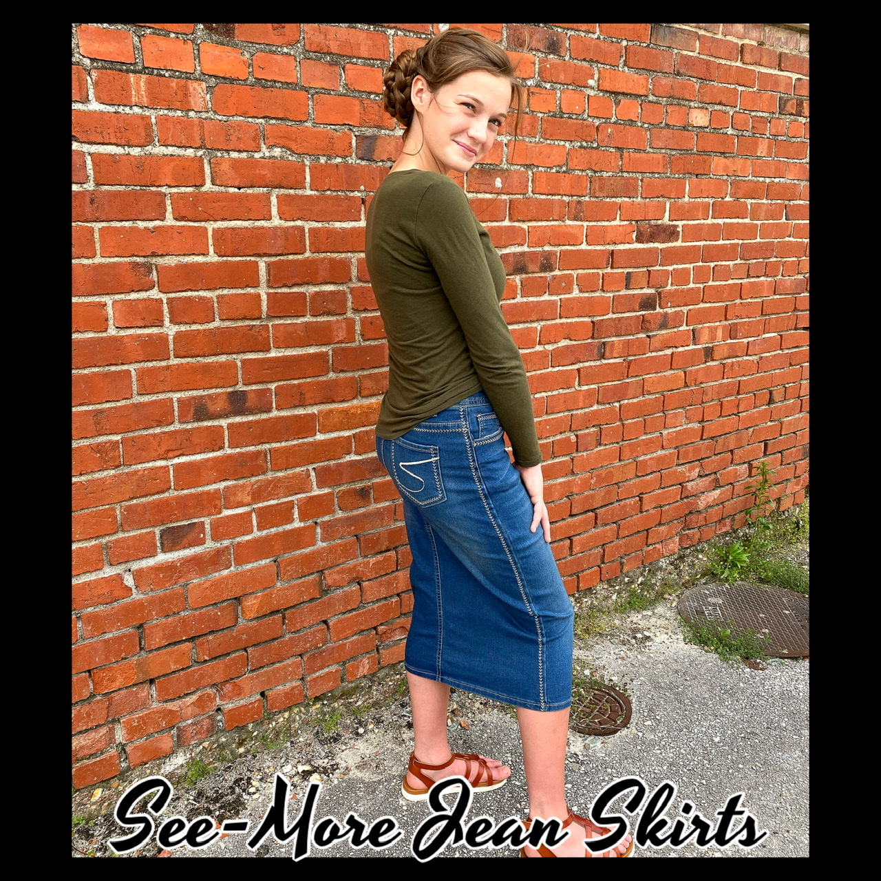 MID-LENGTH WITH EMBROIDERED POCKETS & SIDE SEAM STITCHING DETAIL...FINISHED HEM & NO SPLITS