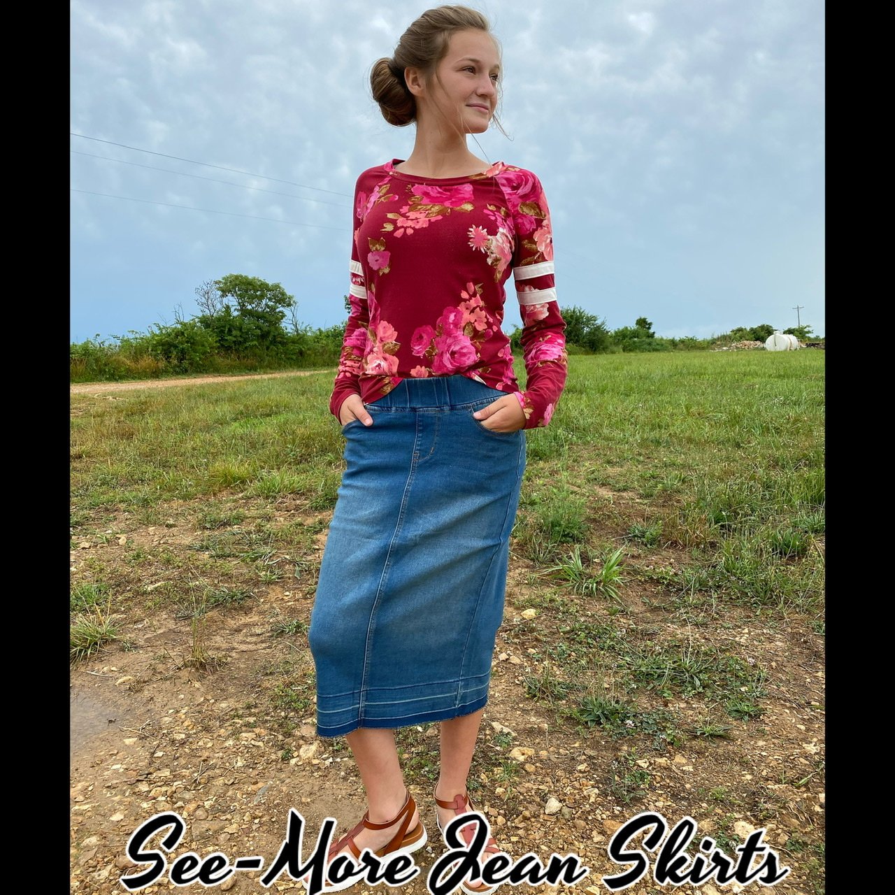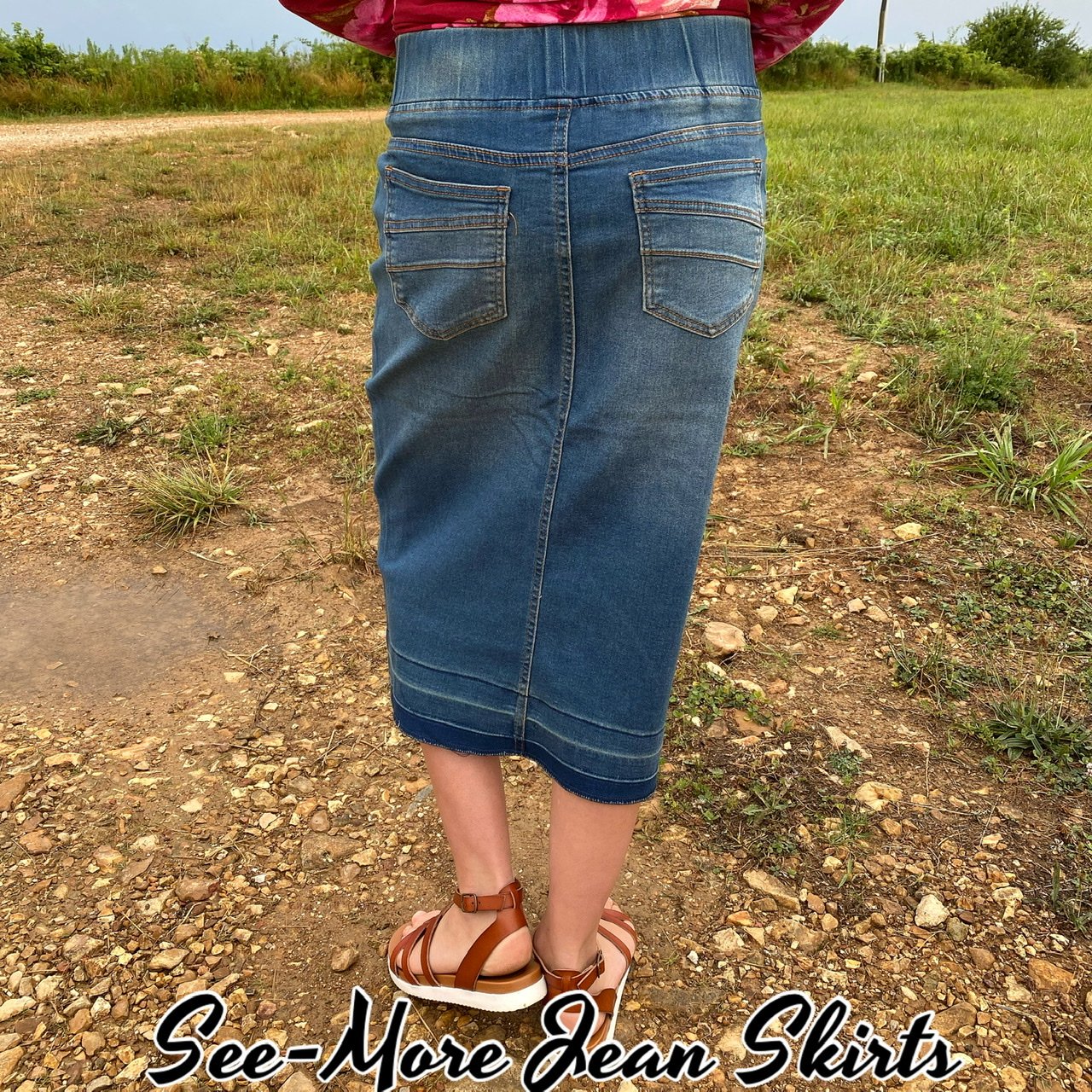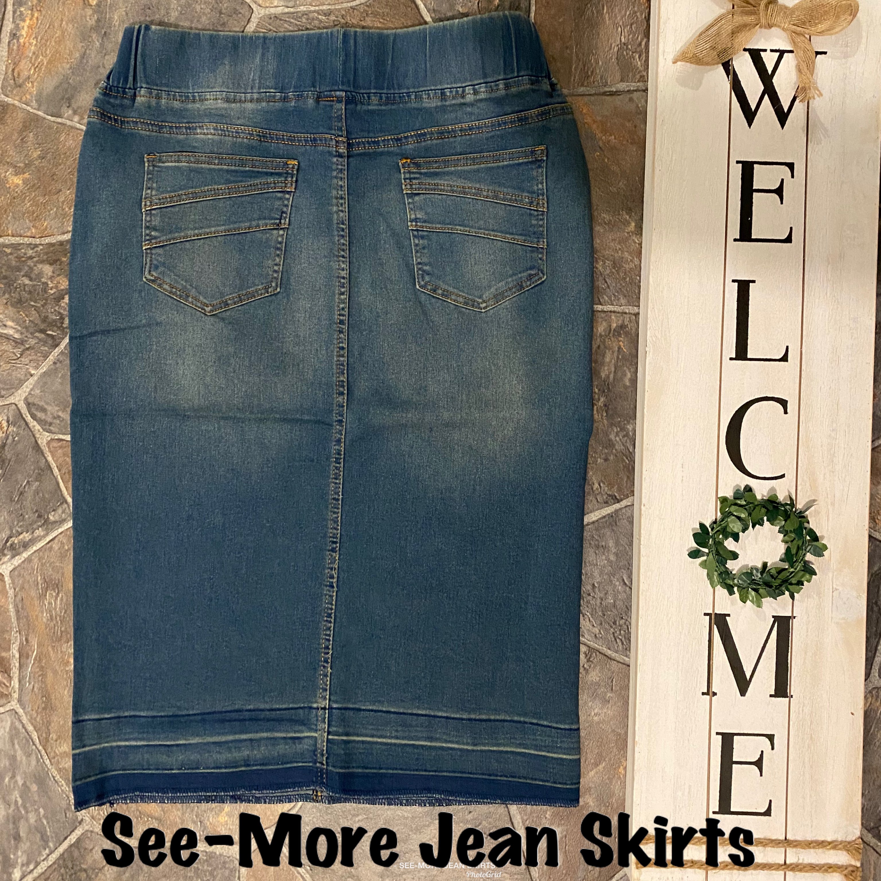 CLASSIC COMFORT VINTAGE WASH MID LENGTH DENIM SKIRT