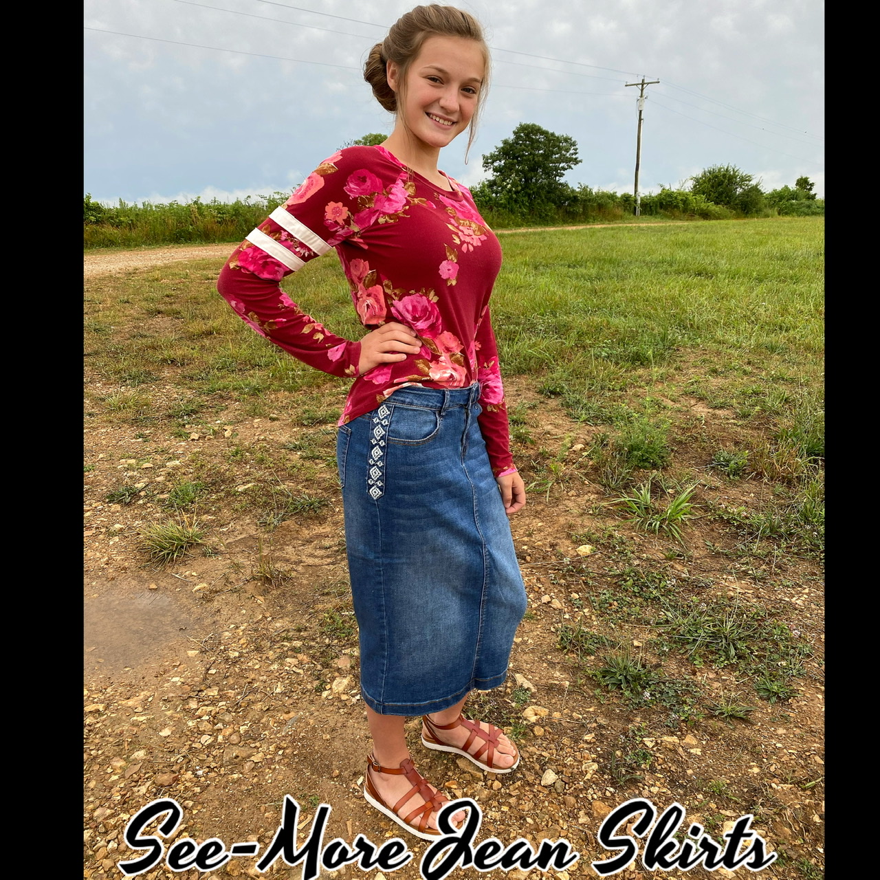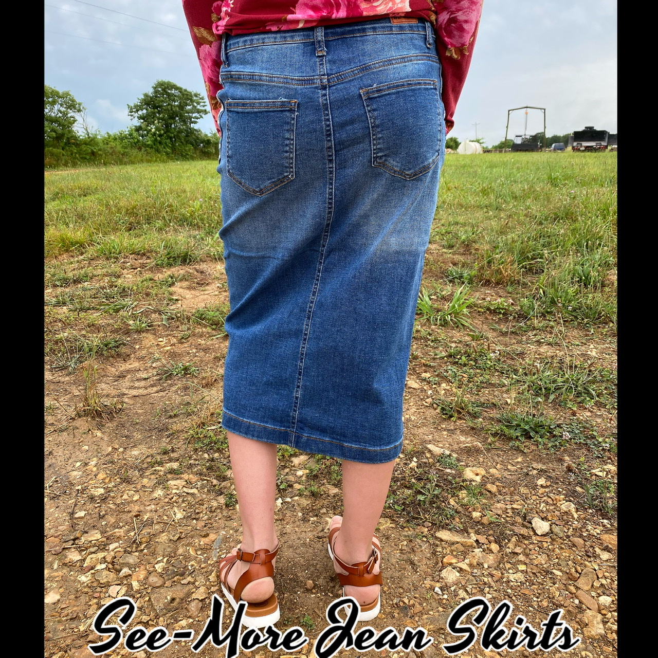 DEMI MID LENGTH INDIGO WASH DENIM SKIRT