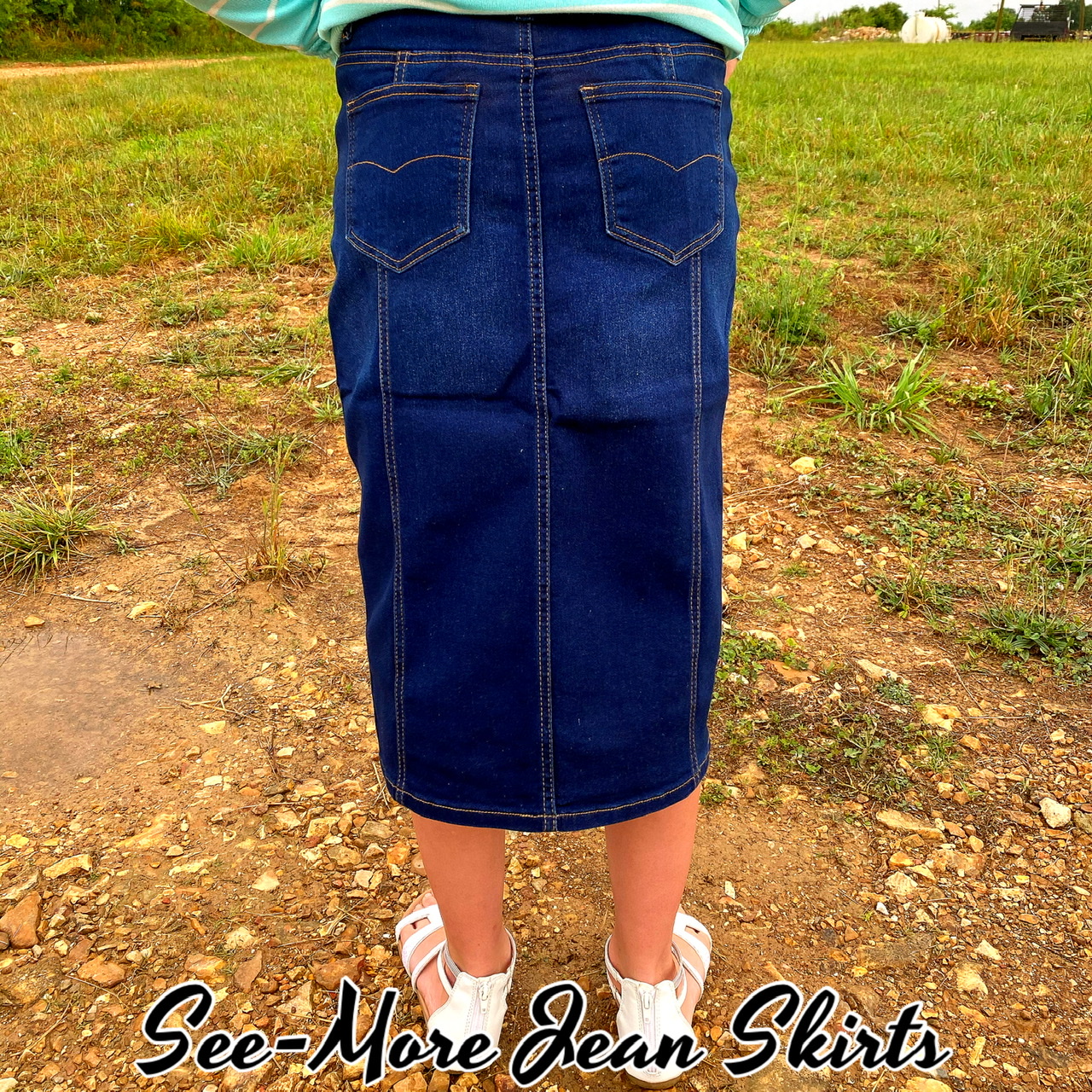 NATALIE MID LENGTH DARK DENIM SKIRT