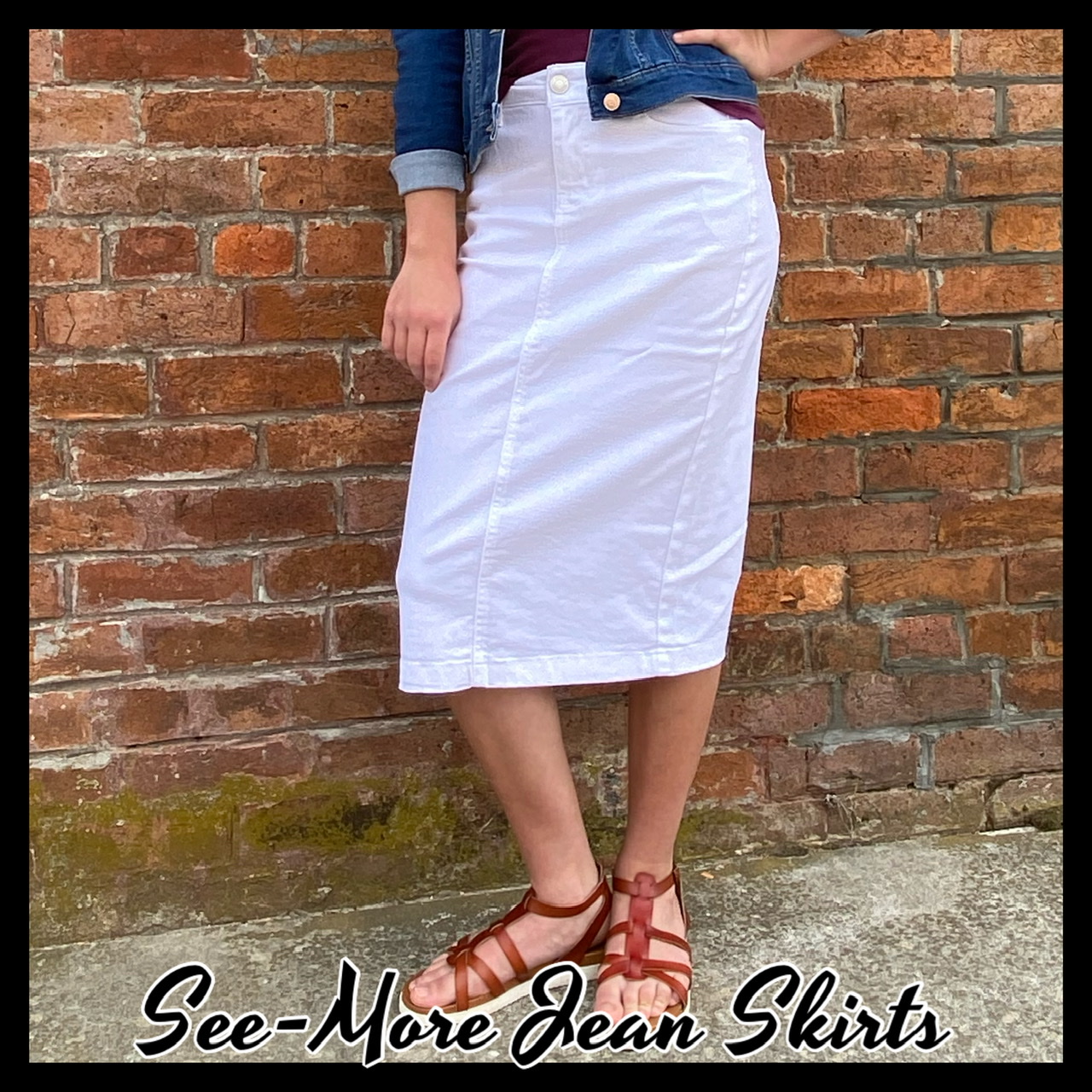 WHITE MID-LENGTH DENIM SKIRT