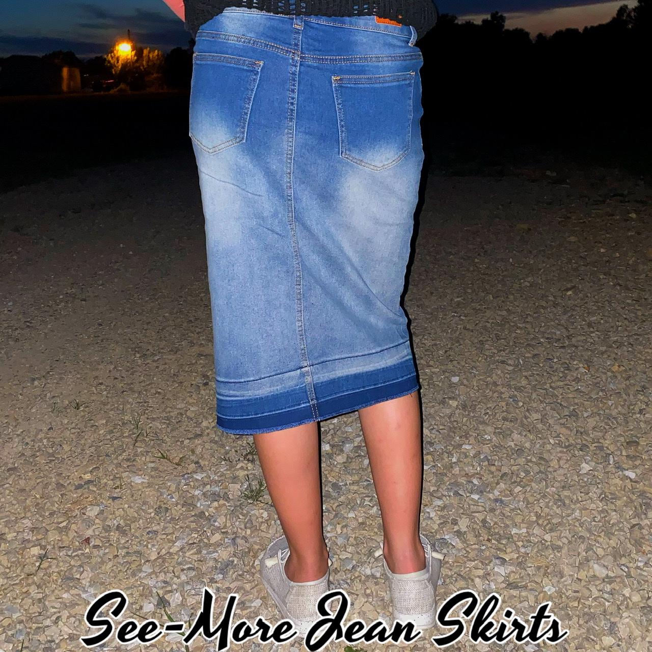BRIDGET BLUE BLUSH MID LENGTH DENIM SKIRT