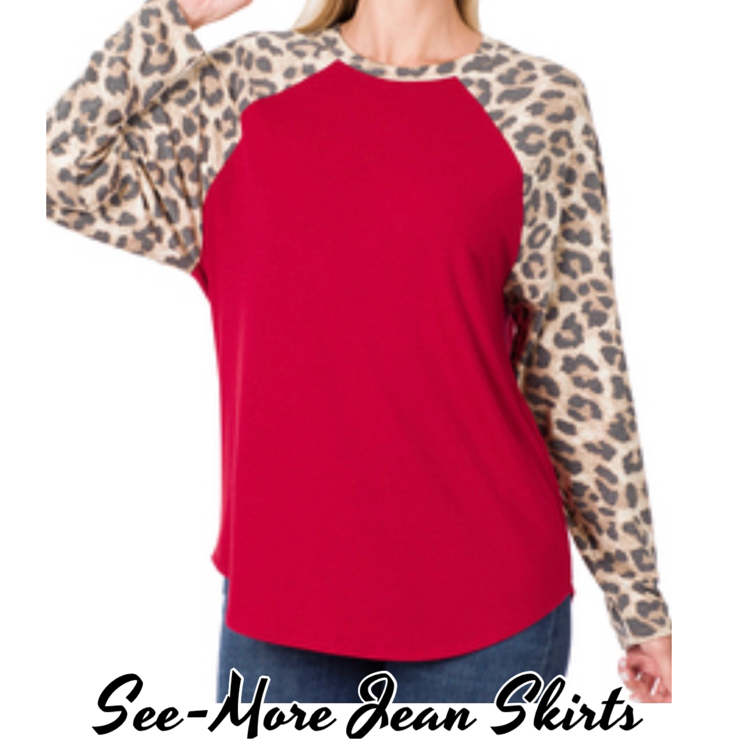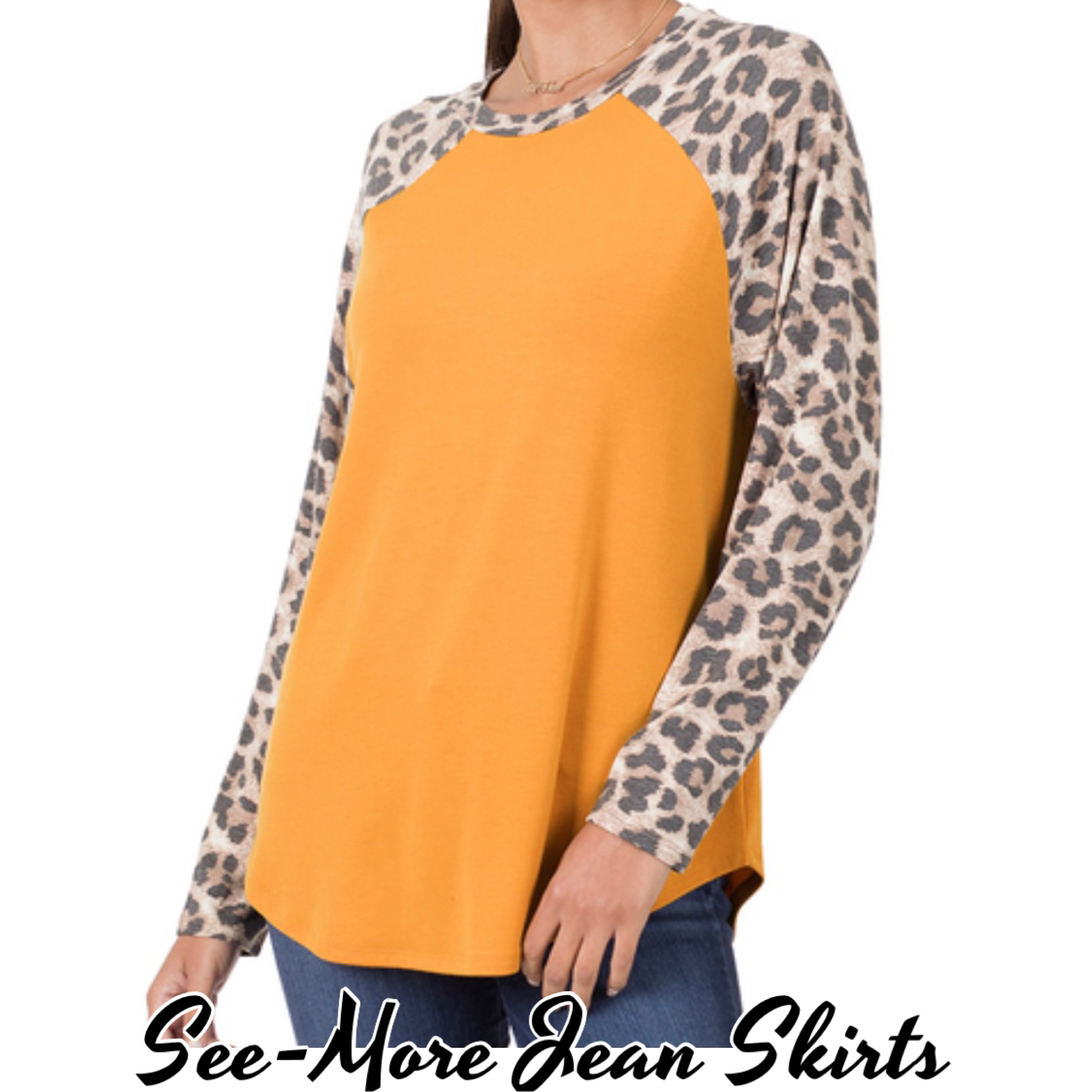 JUNGLE IN COLOR LONG SLEEVE TOP-Black, Red, Mustard