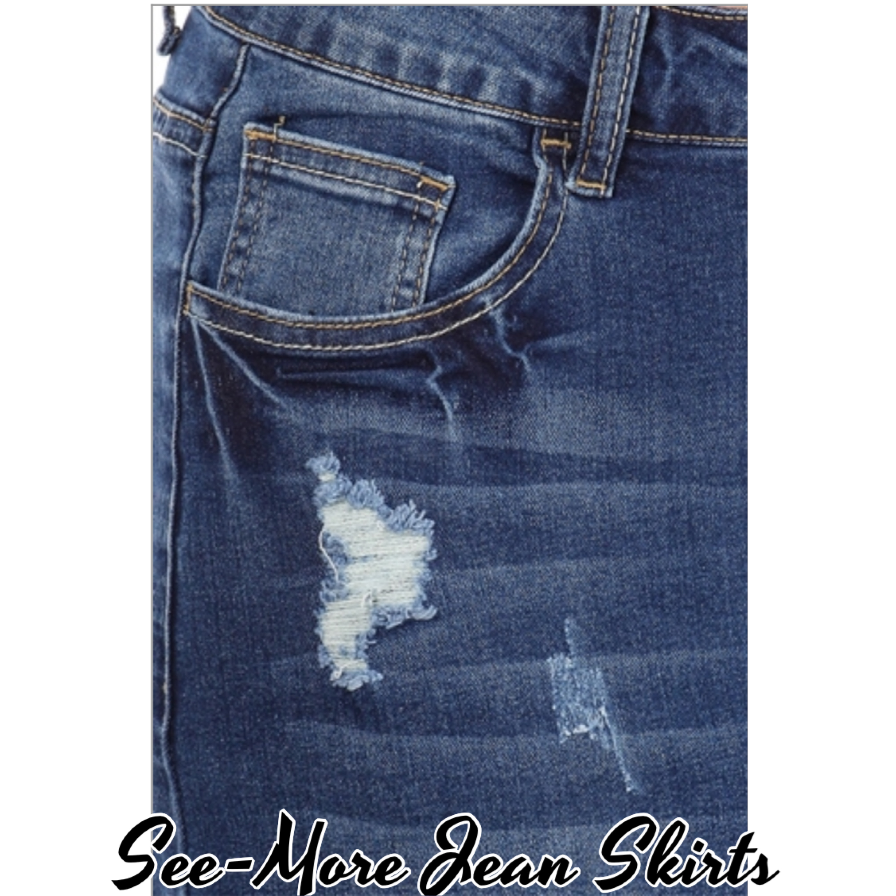 ASHLEY LONG DISTRESSED INDIGO DENIM SKIRT
