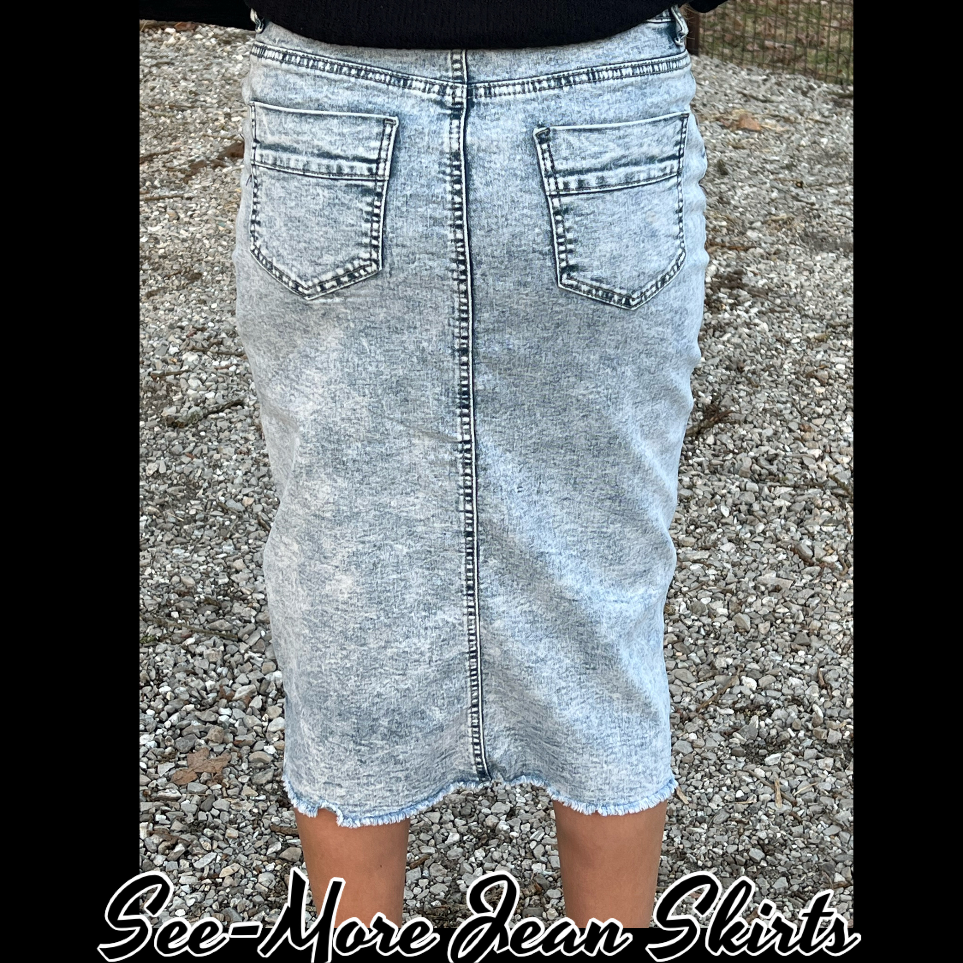 ASPEN MID LENGTH SAND WASH DENIM SKIRT