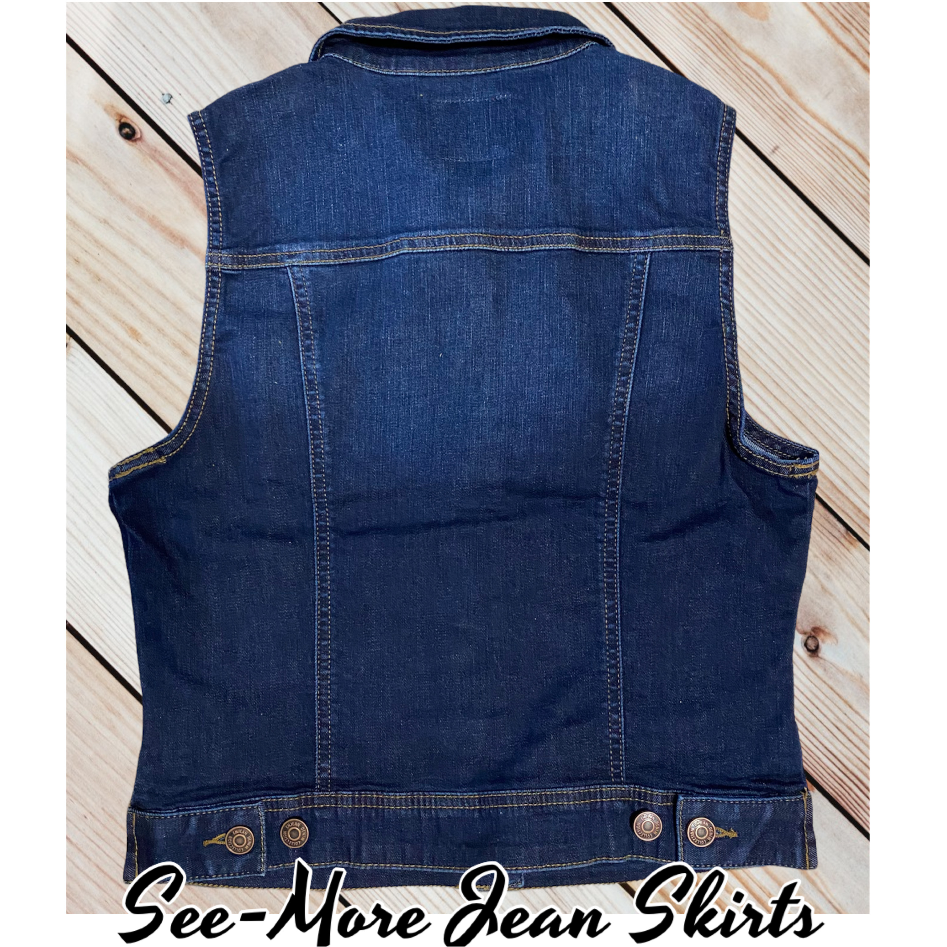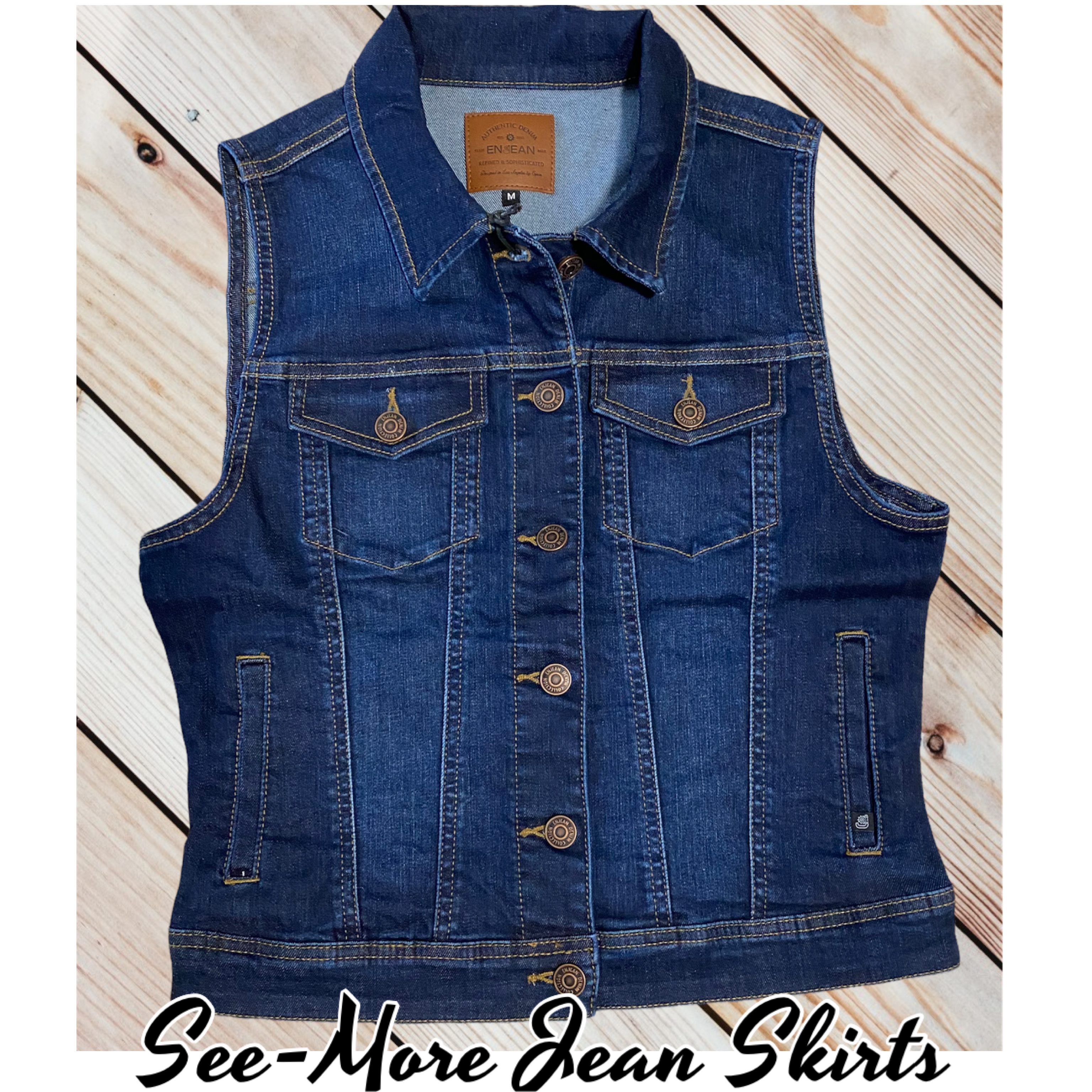 Side pockets, front button closure and adjustable back waist tabs..with a touch of stretch