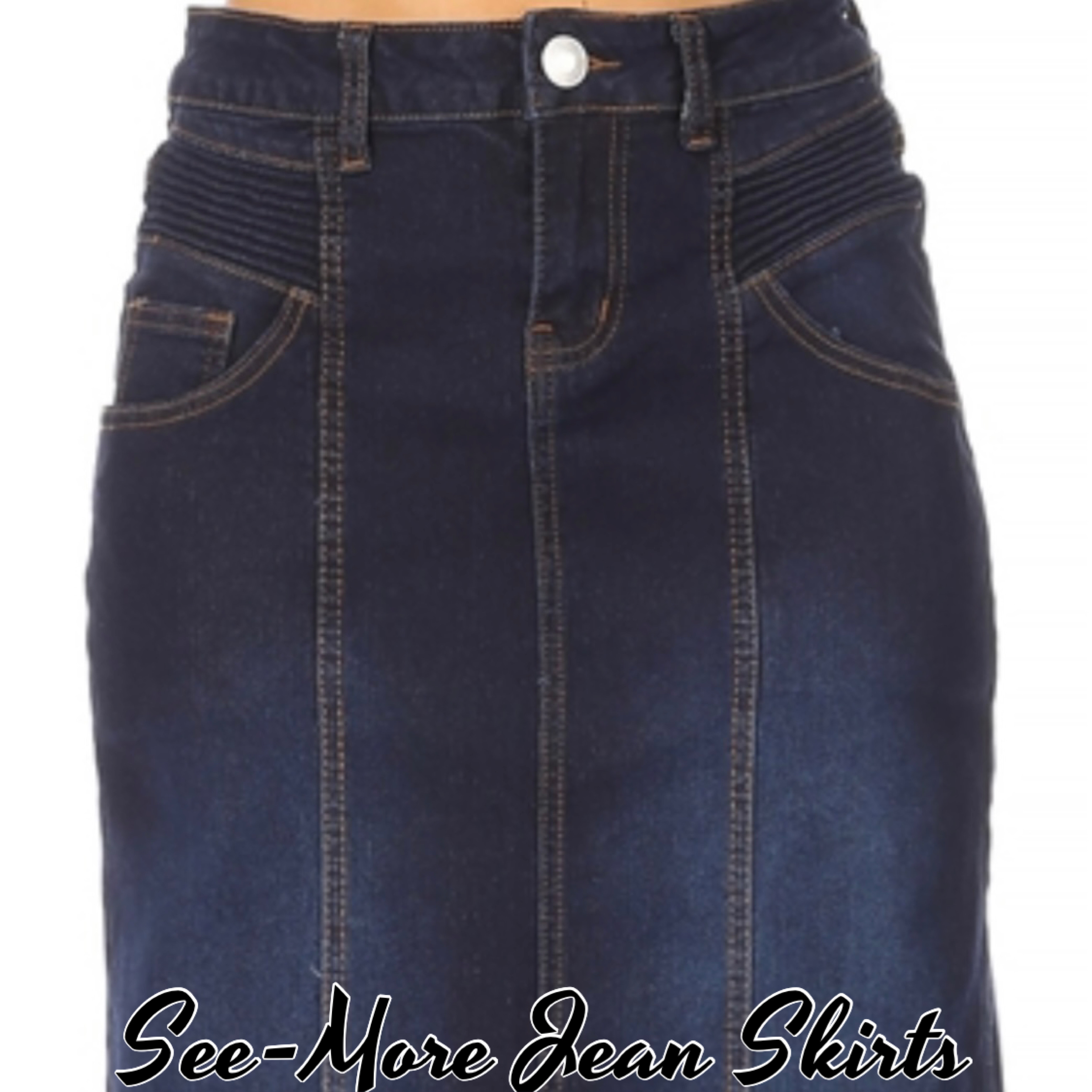 Stretch denim, pleated front pocket detail, no slit Length: 37 Waist/Hip Measurements: XS: 26/34 S: 28/36 M: 30/38 L: 33/42 XL: 35/44 2X: 37/46 3X: 40/48