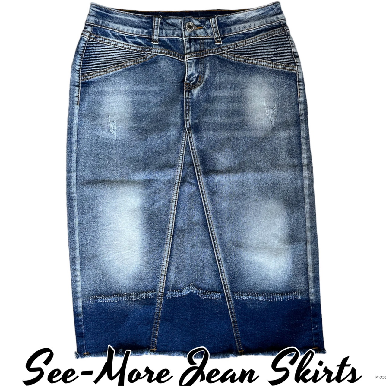 Ombre middle-length pencil skirt, pintuck embellished, triangle-cut, back pockets, no slit Length: 26 inches Waist/Hip Measurements: S: 28/36 M: 30/37 L: 32/40 XL: 34/42