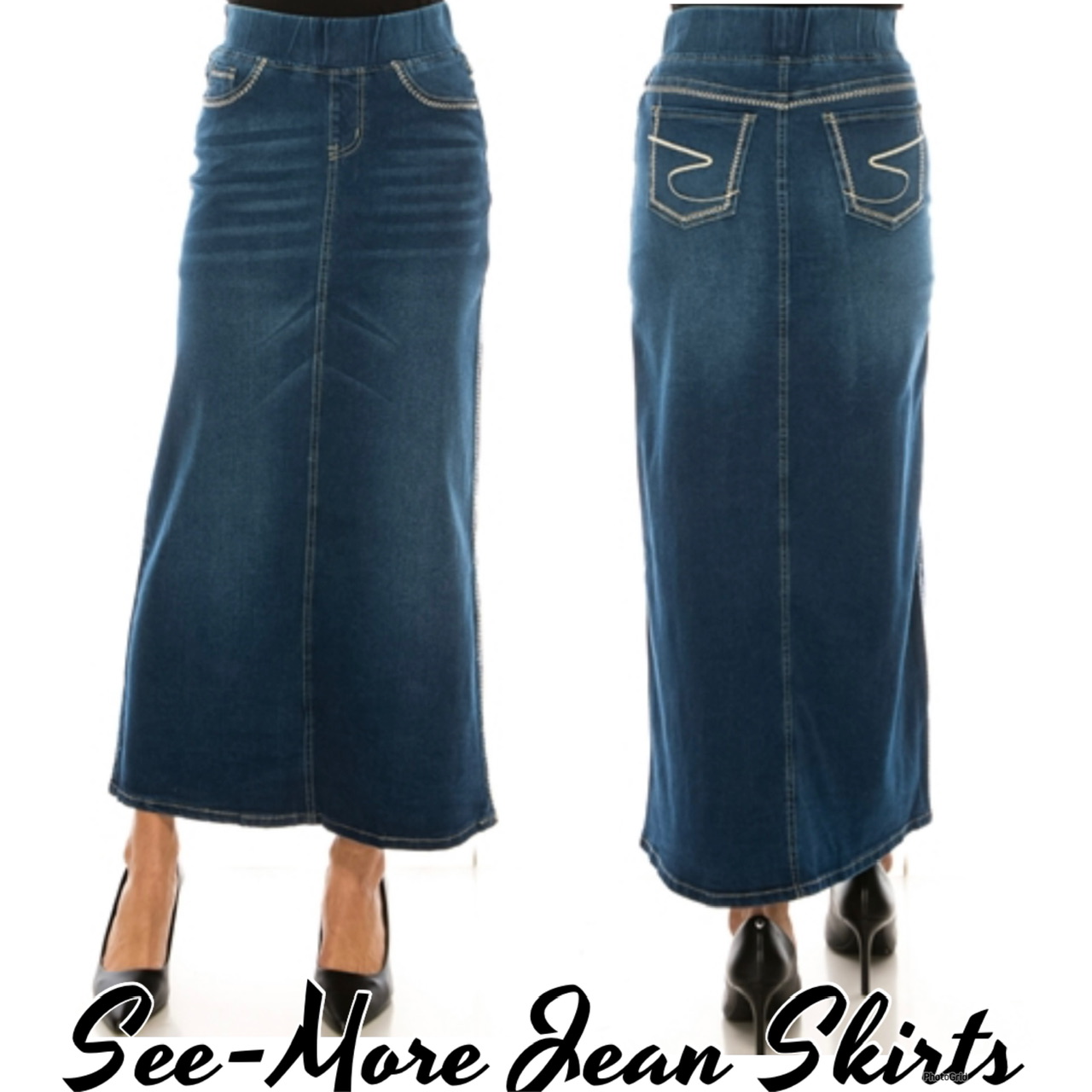CLASSIC COMFORT KRISTY LONG INDIGO WASH DENIM SKIRT