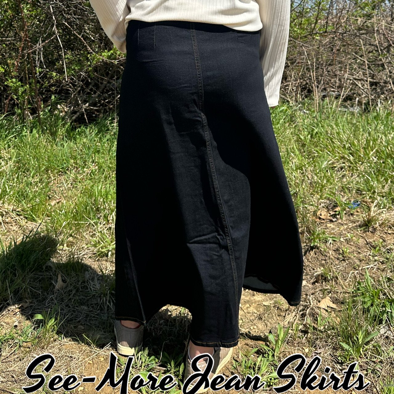 GABBY BUTTON BLACK WASH LONG DENIM SKIRT