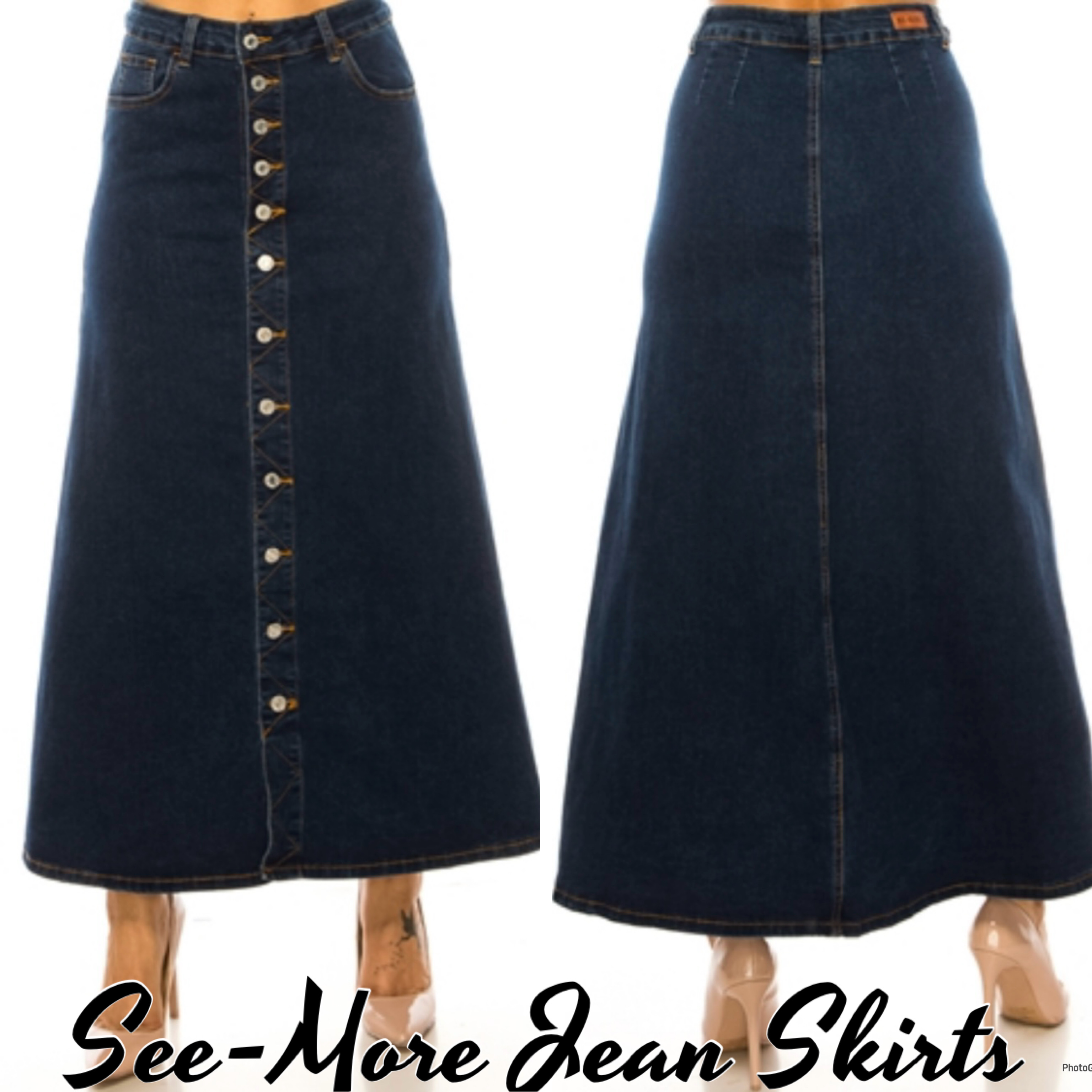 GABBY BUTTON DARK STONE WASH LONG DENIM SKIRT